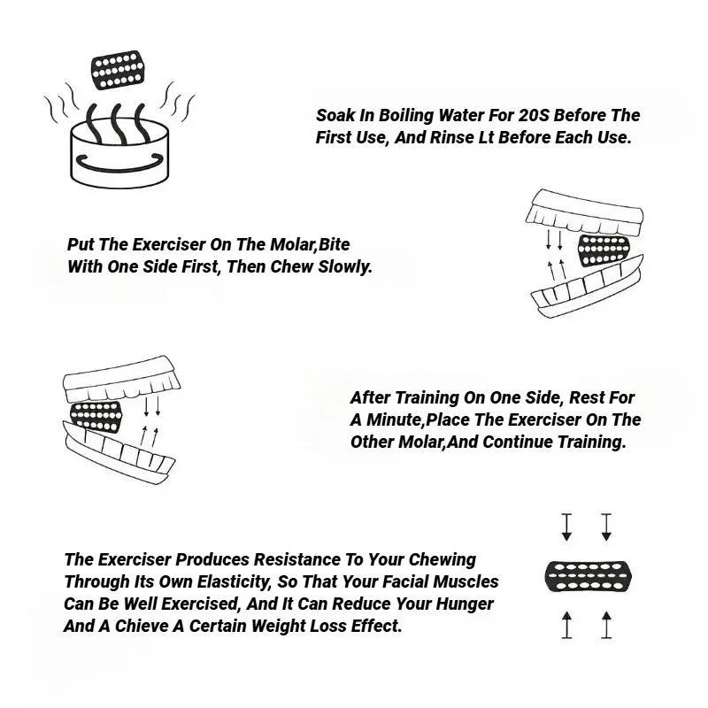 Initial Preparation: Soak the jaw exerciser in boiling water for 20 seconds before first use, then rinse thoroughly before each session.