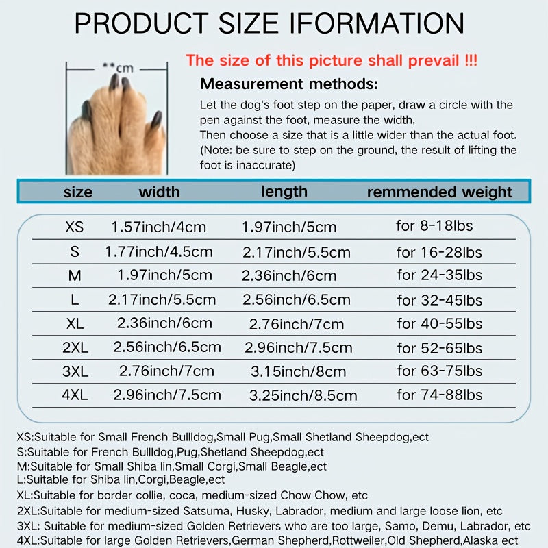 Protect your dog’s paws in any season with this 4-Pack Dog Boots, designed for all breeds from mini to extra-large. Made with durable, stain-resistant polyester, these boots provide comfort, safety, and style whether your pet is walking on hot summer roads, icy winter streets, or rugged outdoor trails.
