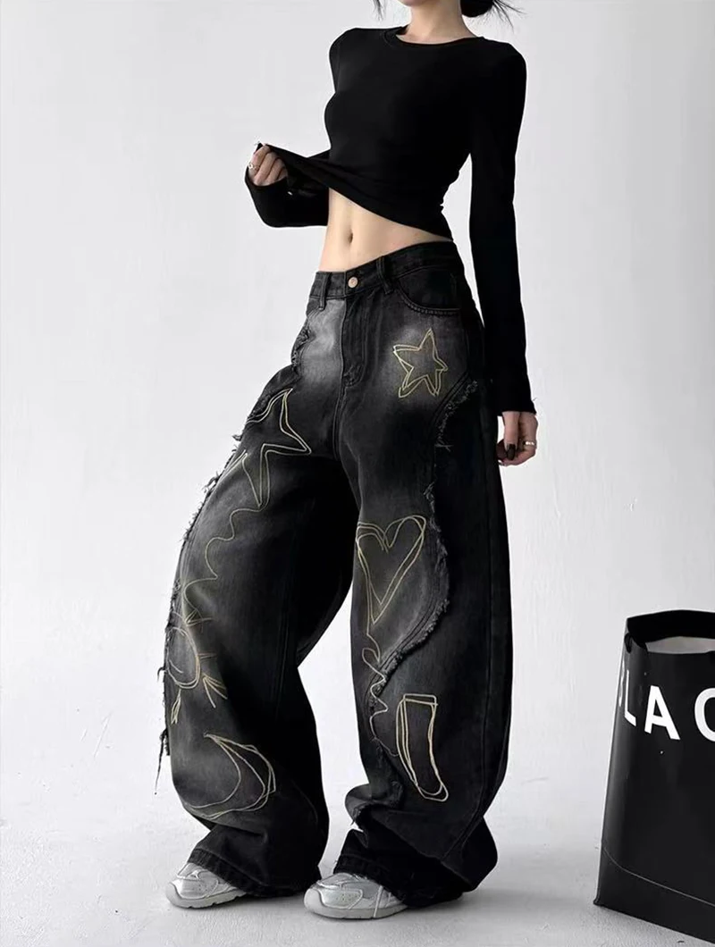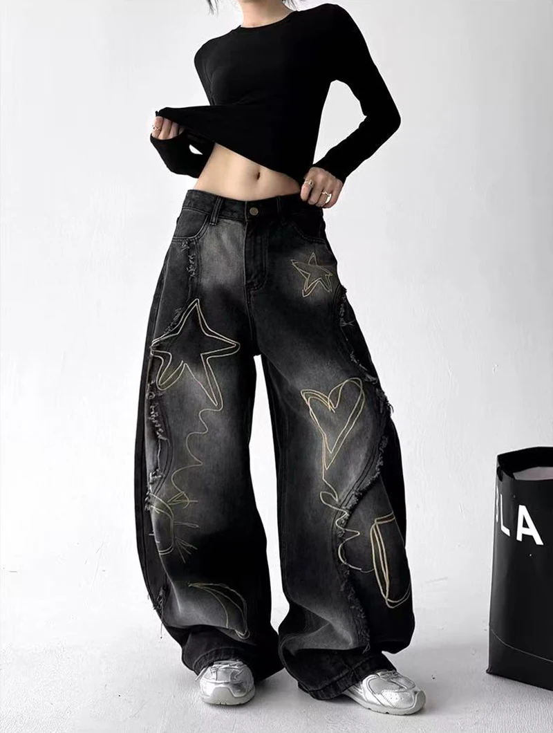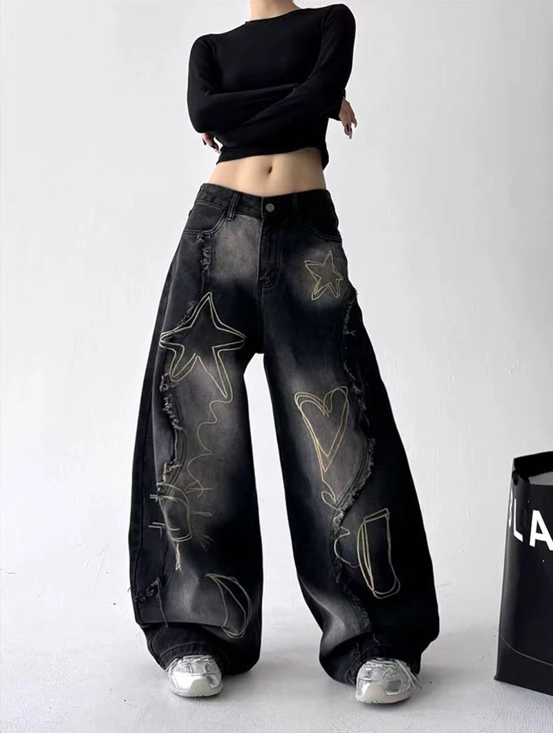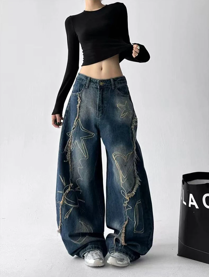 Perfect for pairing with crop tops, oversized hoodies, or fitted tees, these jeans are a must-have for autumn and winter street style outfits.