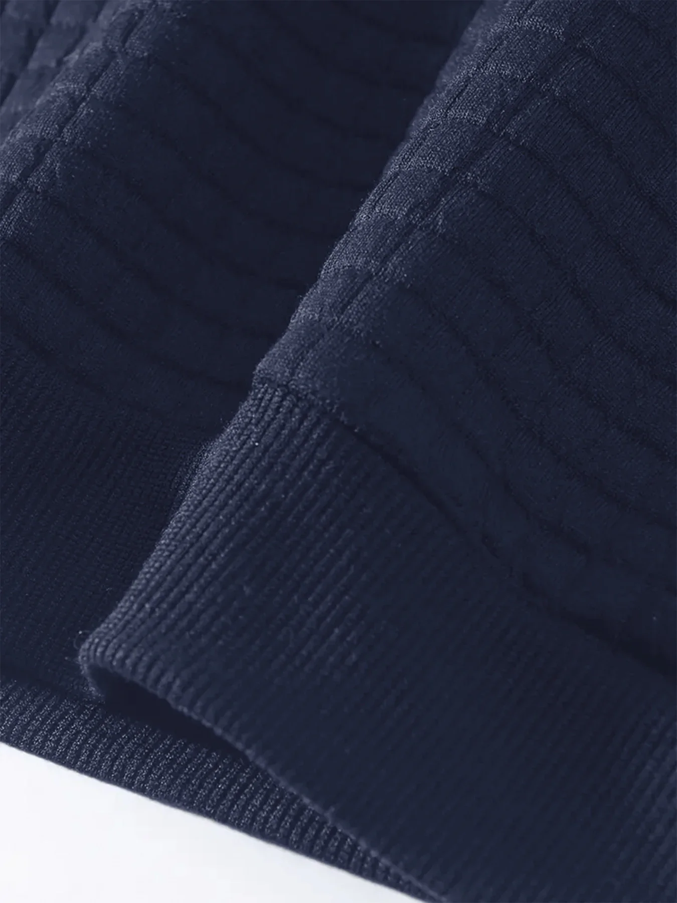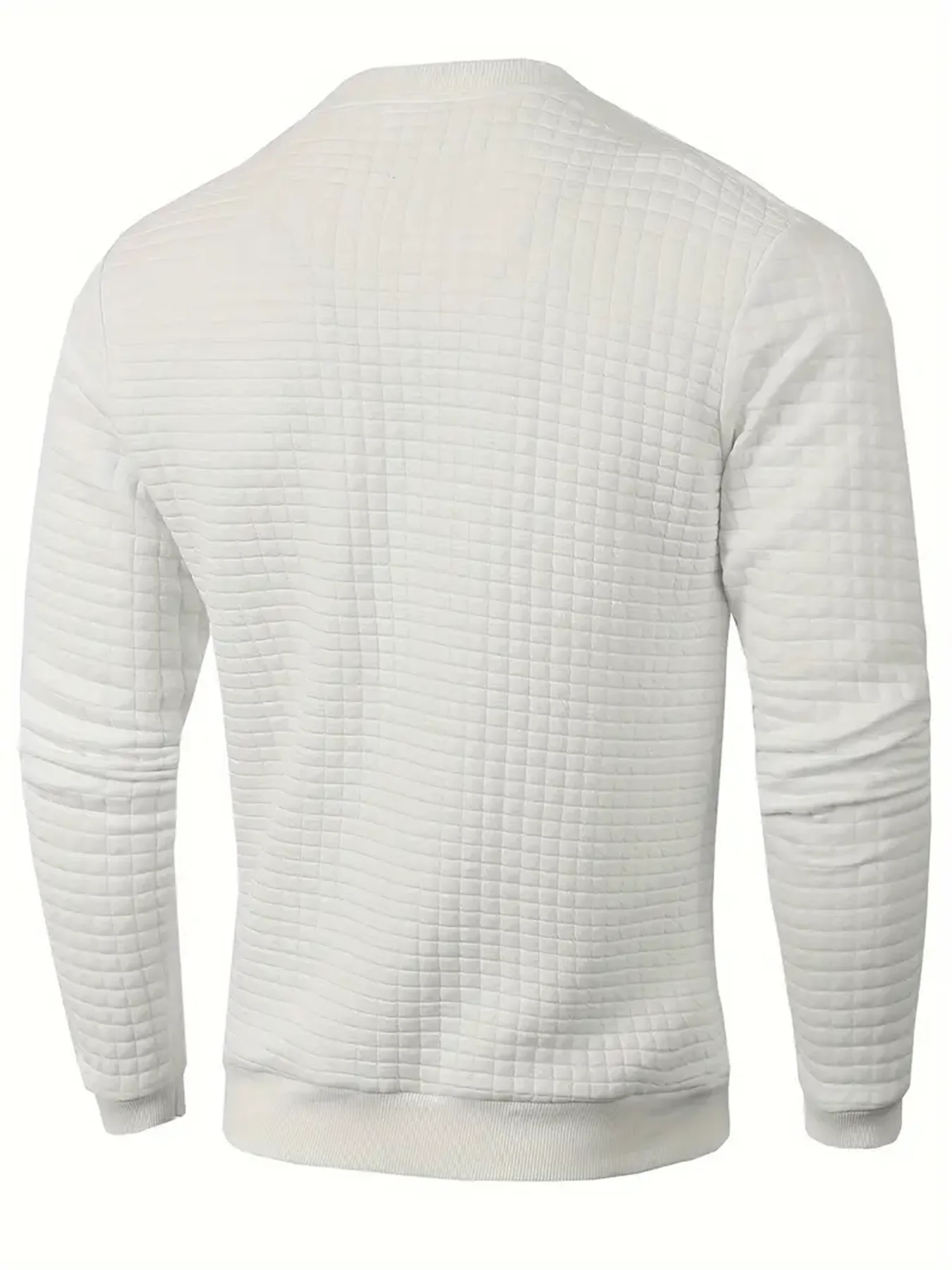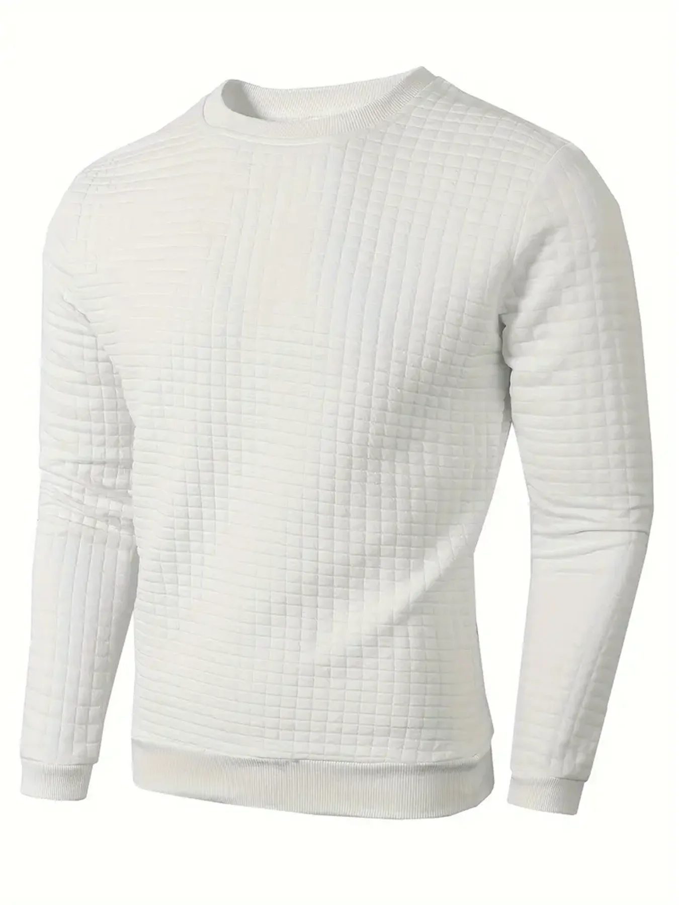 Men’s Autumn Crew Neck Knitted Sweatshirt – Solid Color Jacquard Pullover, Slim Fit Long Sleeve Sweater