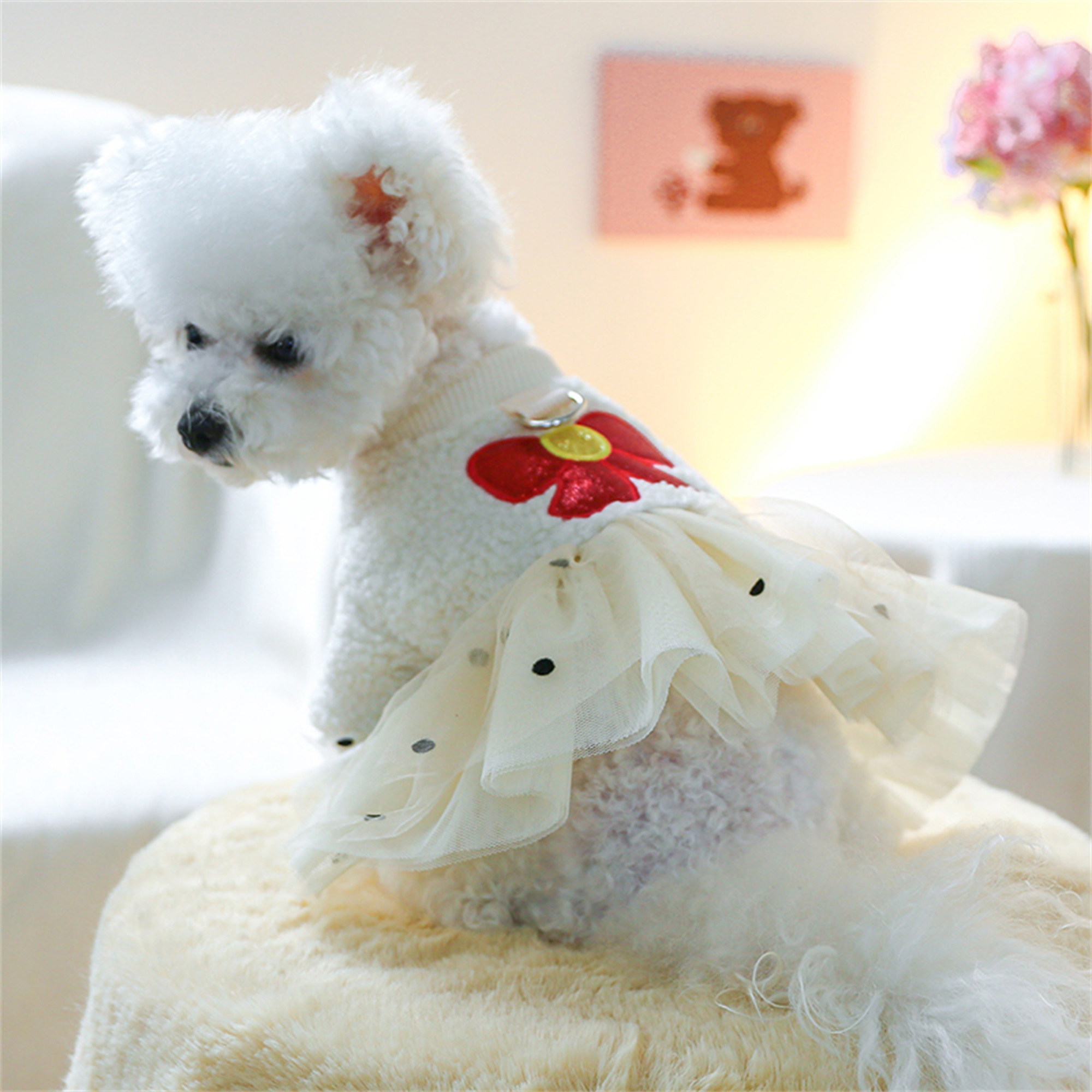 Keep your furry friend stylish and warm with this Dog Winter Princess Dress, featuring elegant bow and embroidery mesh patchwork. Perfect for everyday wear, holidays, or photoshoots, this dress combines fashion and comfort for small to medium pets.